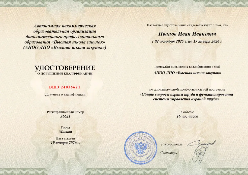 Повышение квалификации, 16 академических часов, 4 модуля: правовые основы и организация системы охраны труда, управление профессиональными рисками и оценка условий труда, обеспечение безопасных условий и социальные гарантии работникам, расследование несчастных случаев и внутренний аудит системы. Онлайн-обучение в в Брянске с итоговой аттестацией.