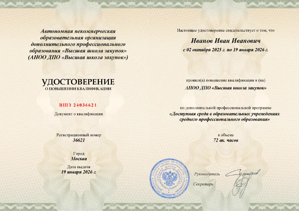 Эта программа предназначена для специалистов, которые хотят актуализировать и углубить свои знания в уже освоенной профессиональной области. Для зачисления необходимо наличие высшего или среднего профессионального образования (СПО). По окончании обучения выпускникам выдается удостоверение о повышении квалификации установленного образца. Объем программ вариативен и обычно составляет от 16 до 250 академических часов, что позволяет выбрать как краткий интенсив, так и основательный курс.