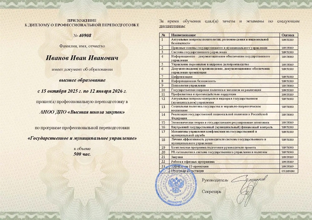 Профессиональная переподготовка, 500 академических часов, 25 модулей: правовые основы и система государственного управления, управление персоналом, финансами и противодействие коррупции, социальная политика и экономическое регулирование, цифровизация, закупки и информационная безопасность. Онлайн-обучение в в Брянске с итоговой аттестацией.