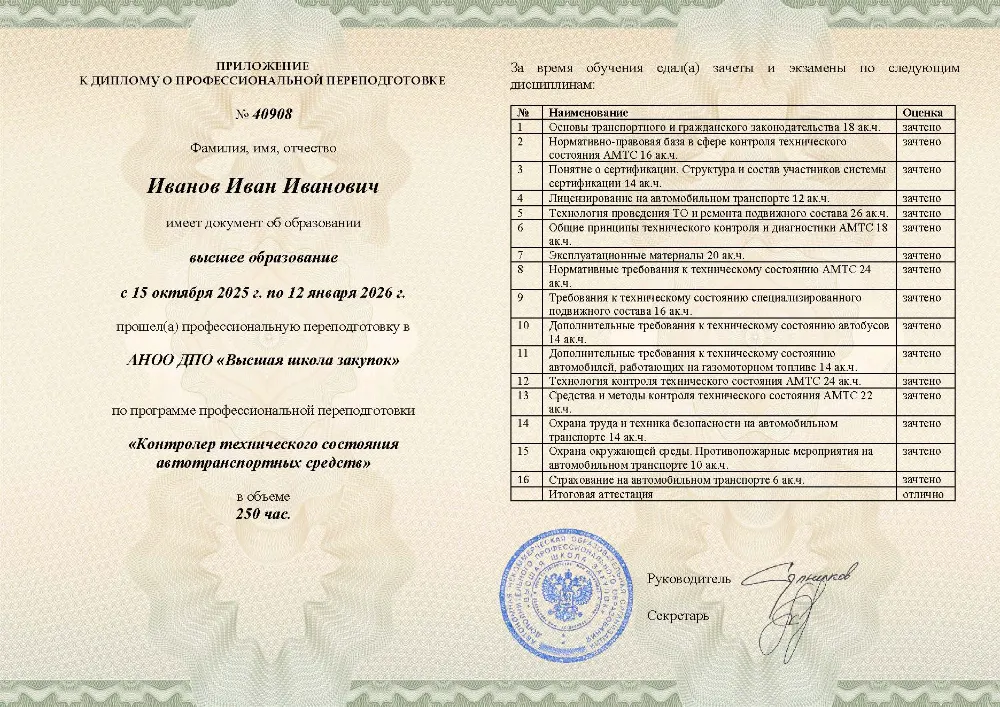 Профессиональная переподготовка, 250 академических часов, 7 модуля: нормативно-правовые основы и технологии контроля, охрана труда, экологии и требования к техническому состоянию транспортных средств. Онлайн-обучение в в Брянске с итоговой аттестацией.